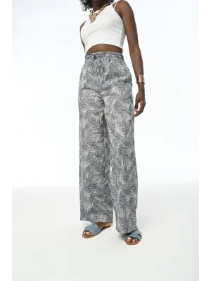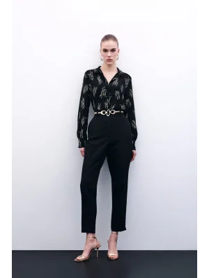Bel Lastikli Desenli Pantolon - SİYAH