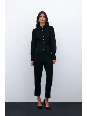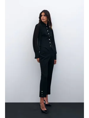 Paça Çıtçıt Detaylı Pantolon - Siyah