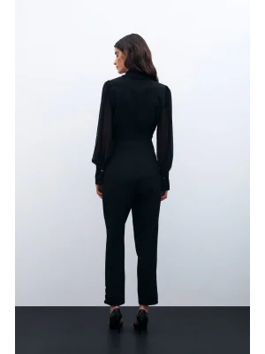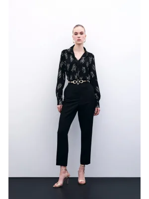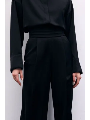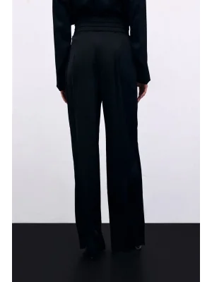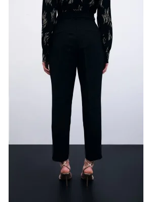 Bel Detaylı Pantolon - Siyah