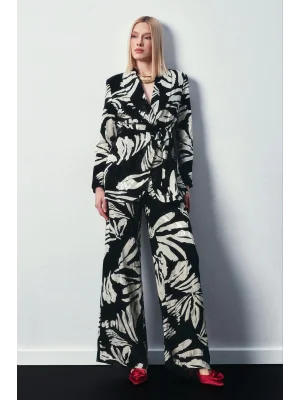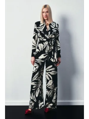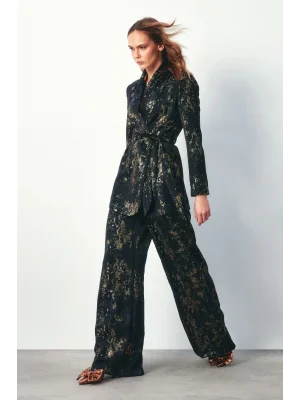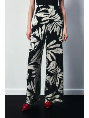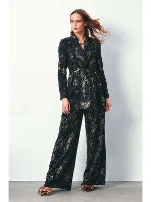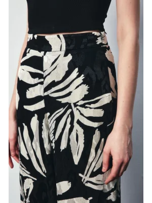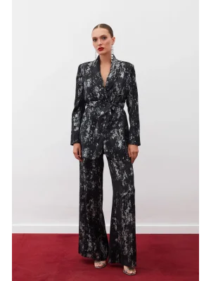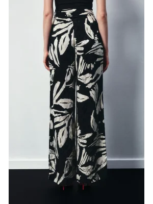 Çiçek Desenli Saten Pantolon - SİYAH