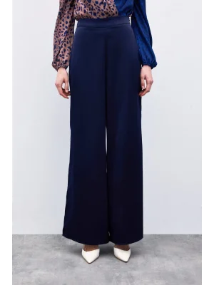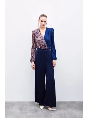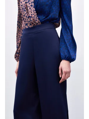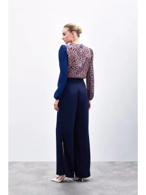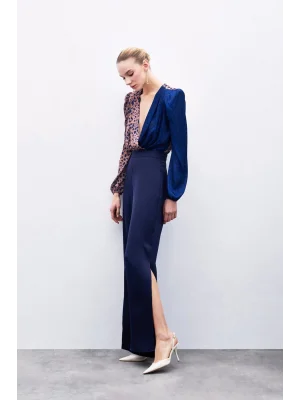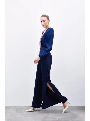 Yırtmaç Detaylı Saten Pantolon - Lacivert