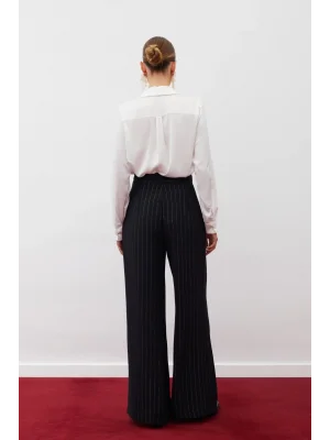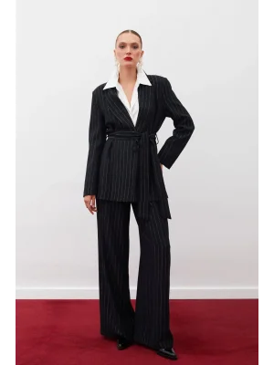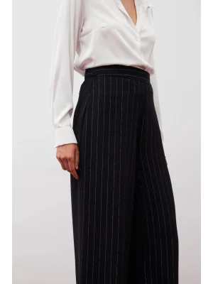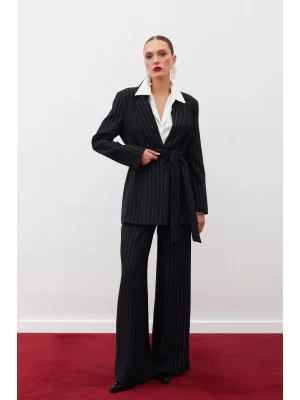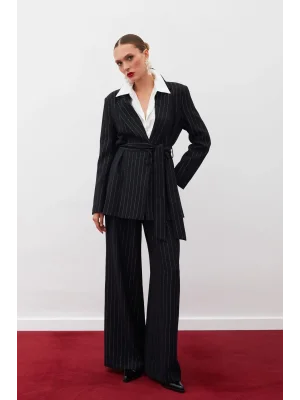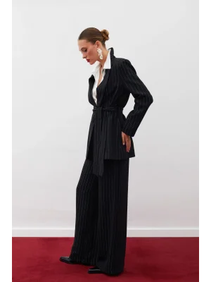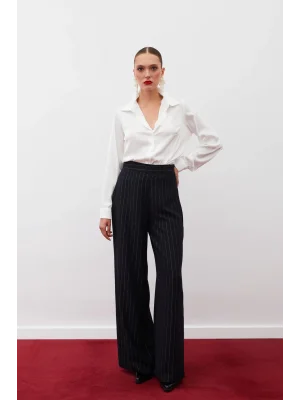 Simli Çizgili Pantolon - SİYAH ÇİZGİLİ