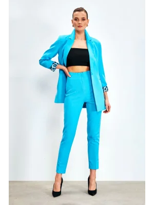Yüksek Bel Pensli Pantolon - BEBE MAVİ