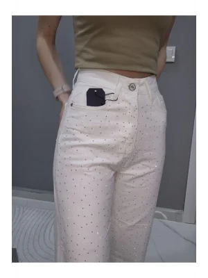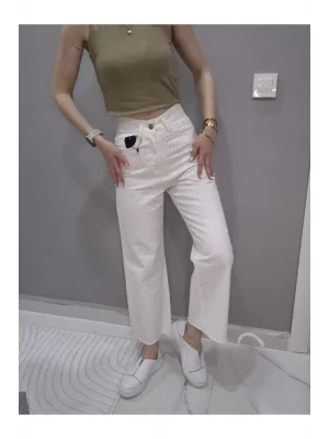 Taşlı Pantolon - Beyaz