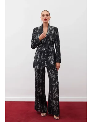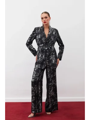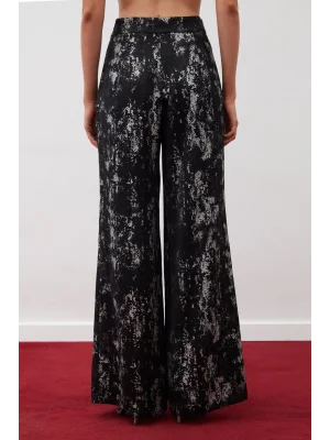 Parlak Desenli Salaş Pantolon - SİYAH-GÜMÜŞ