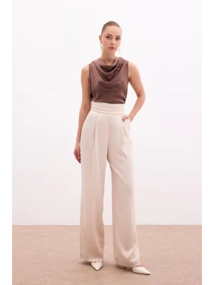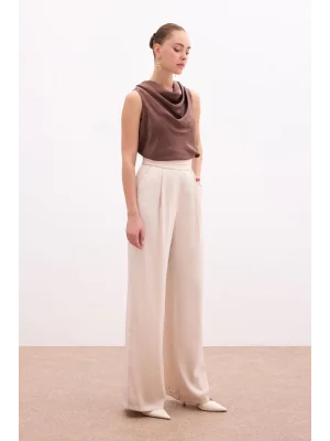 Cepli Salaş Saten Pantolon - Bej