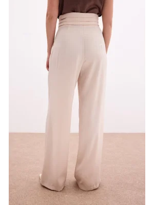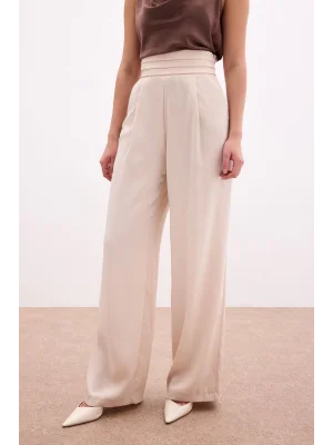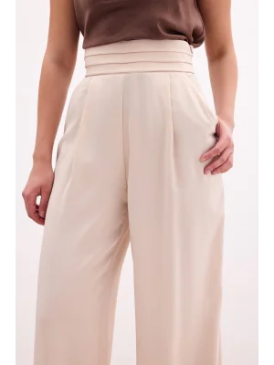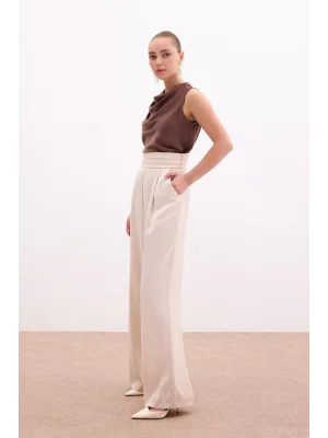 Yüksek Bel Pensli Pantolon - Ekru