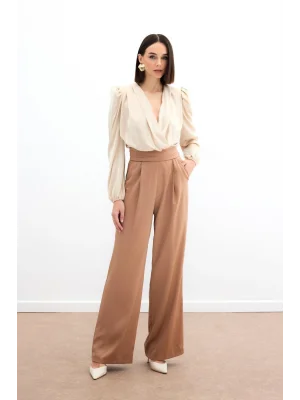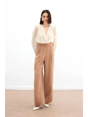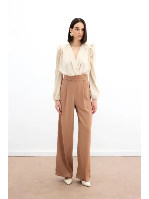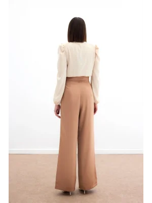 Cepli Salaş Saten Pantolon - Camel