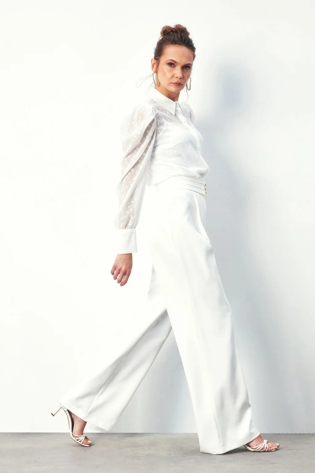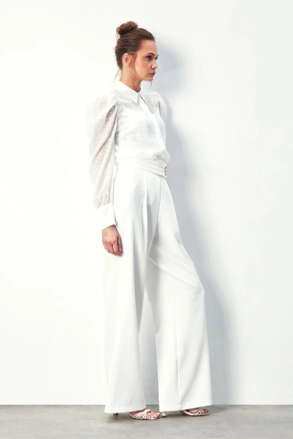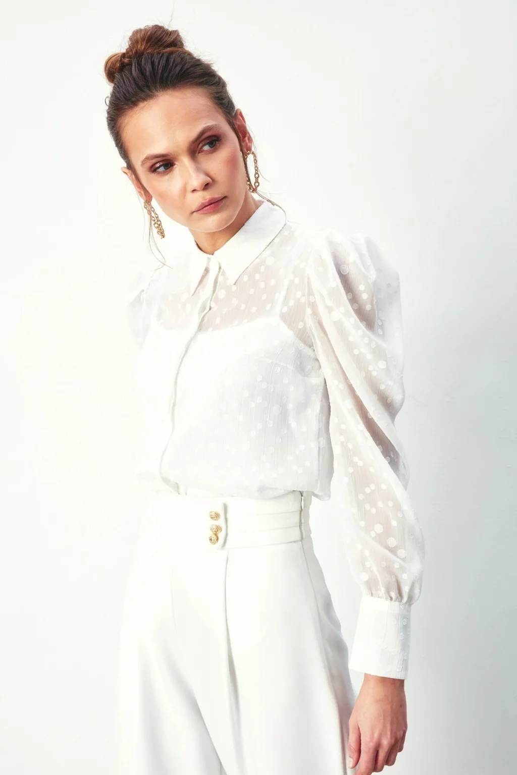 Puantiye Dokulu Gömlek - Ekru