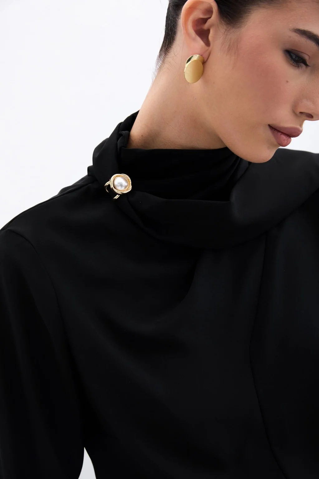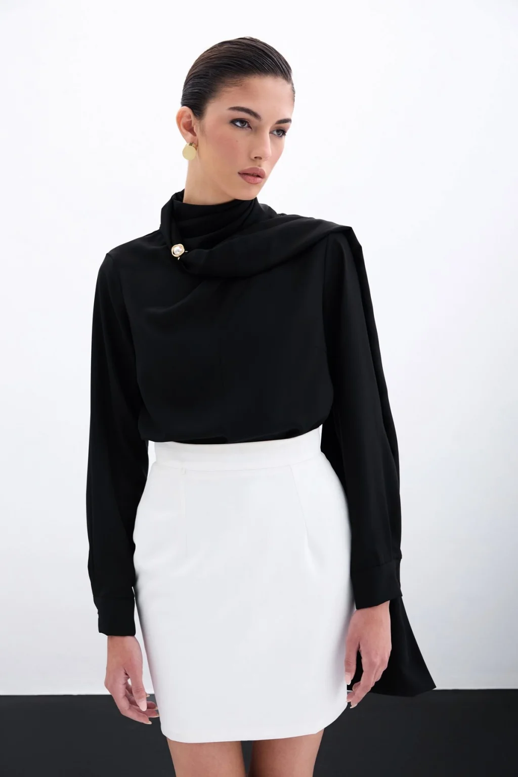 Şal Detaylı Bluz - Siyah