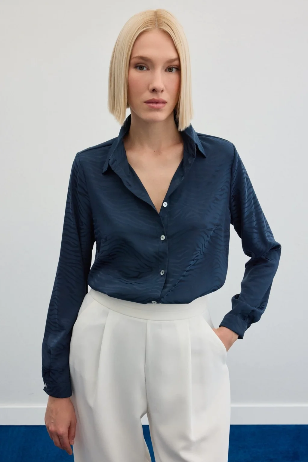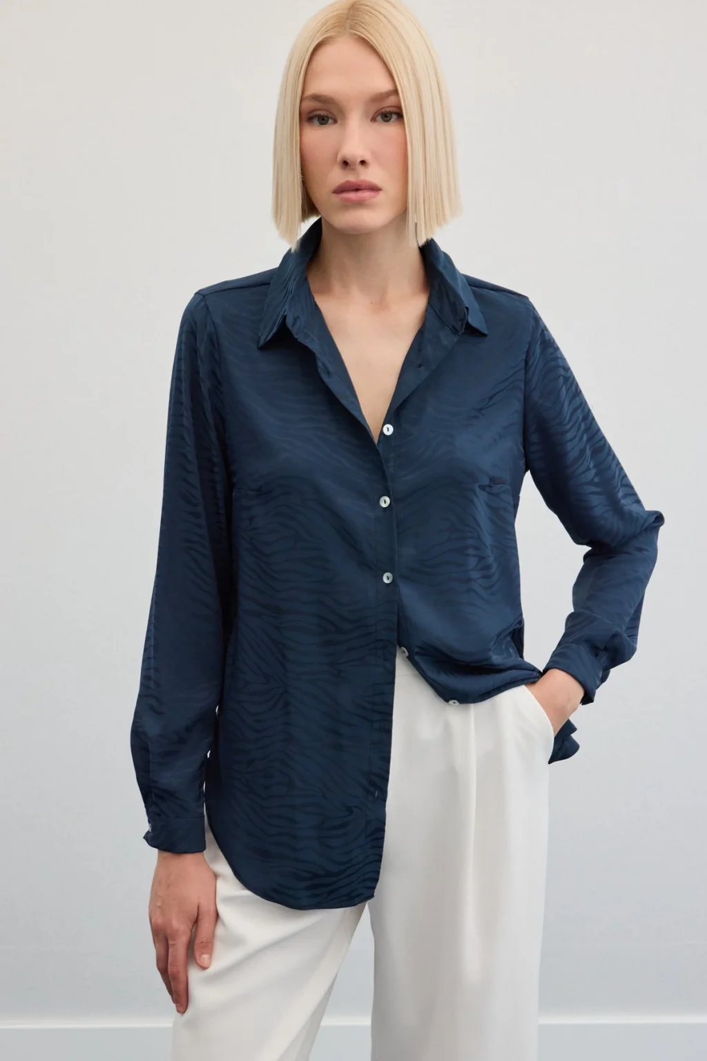 Zebra Desenli Gömlek - Lacivert